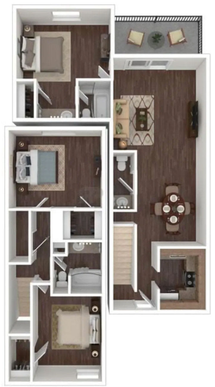3x2.5 floor plans offer 1,500 square feet with starting rates from $1,433 to $1,498.